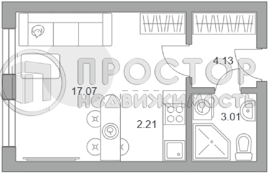 Студия правильной формы, два окна - возможно функционально организовать пространство для собственного проживания или сдачи в аренду.